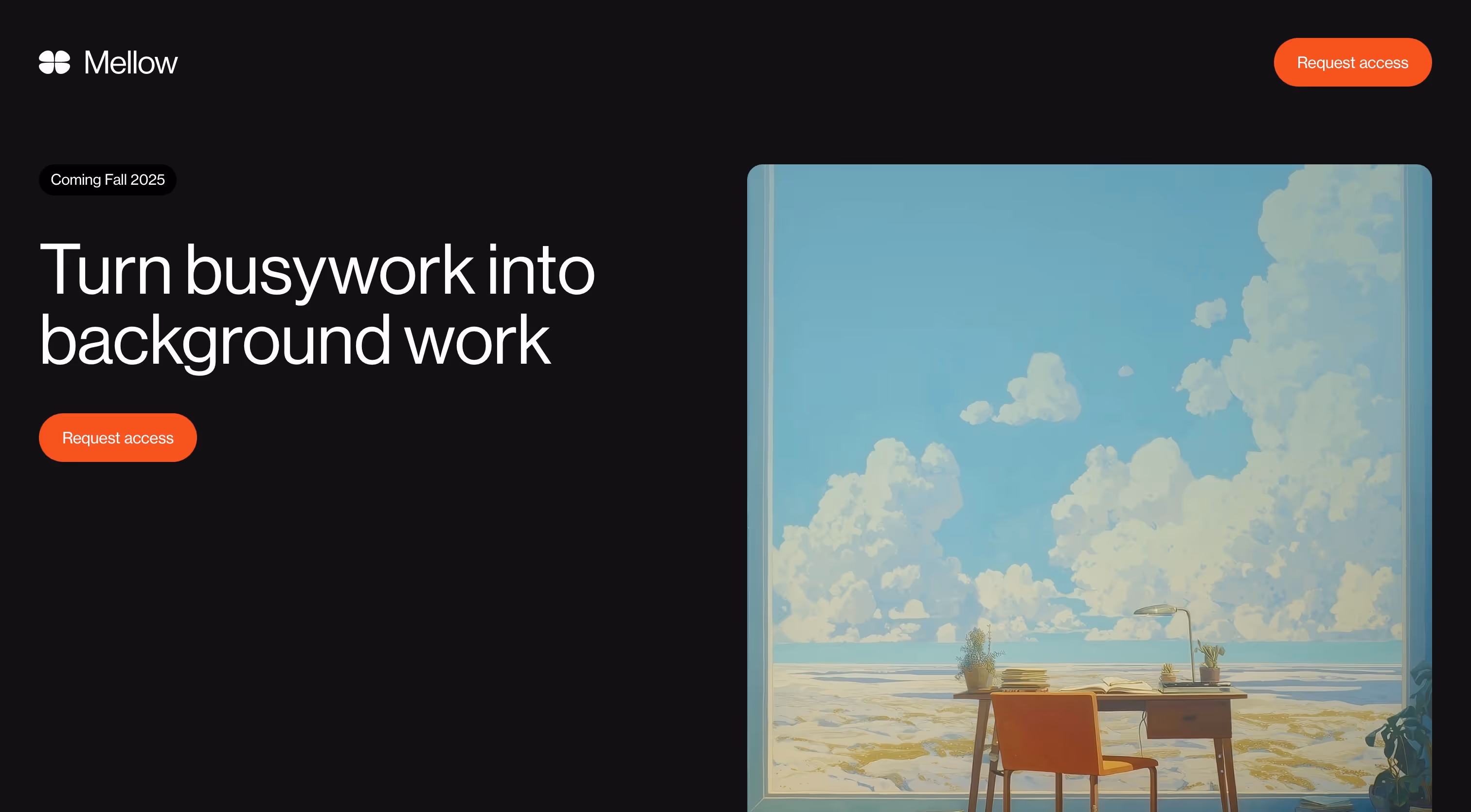 Mellow is a workspace assistant that turns busywork into background work—just tell it what's on your mind via voice, chat, or a photo and it suggests ways it can help.