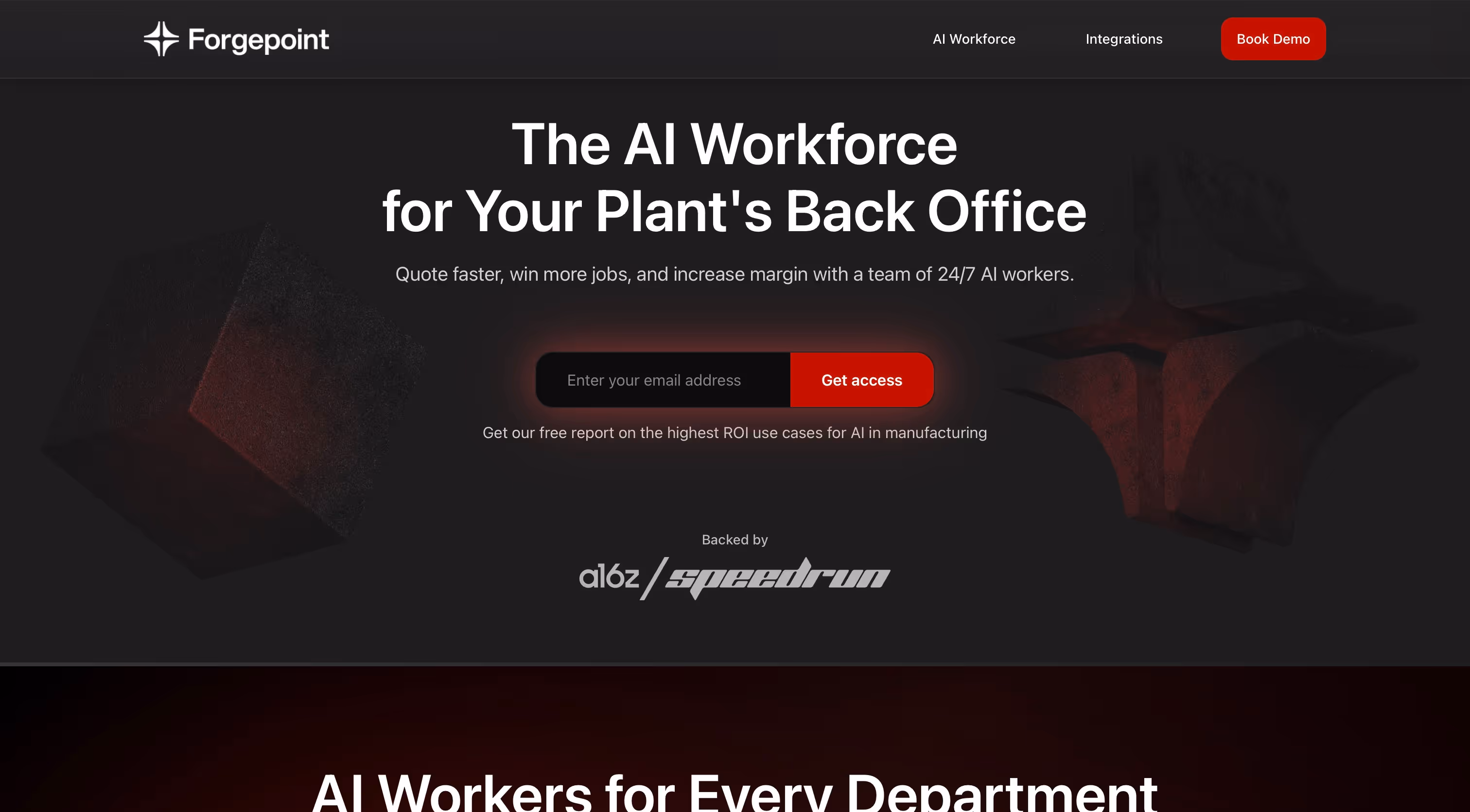 Forgepoint provides a 24/7 AI workforce for manufacturers' back offices—helping plants quote faster, win more jobs, and increase margins by automating workflows across existing ERP/CRM/email systems.