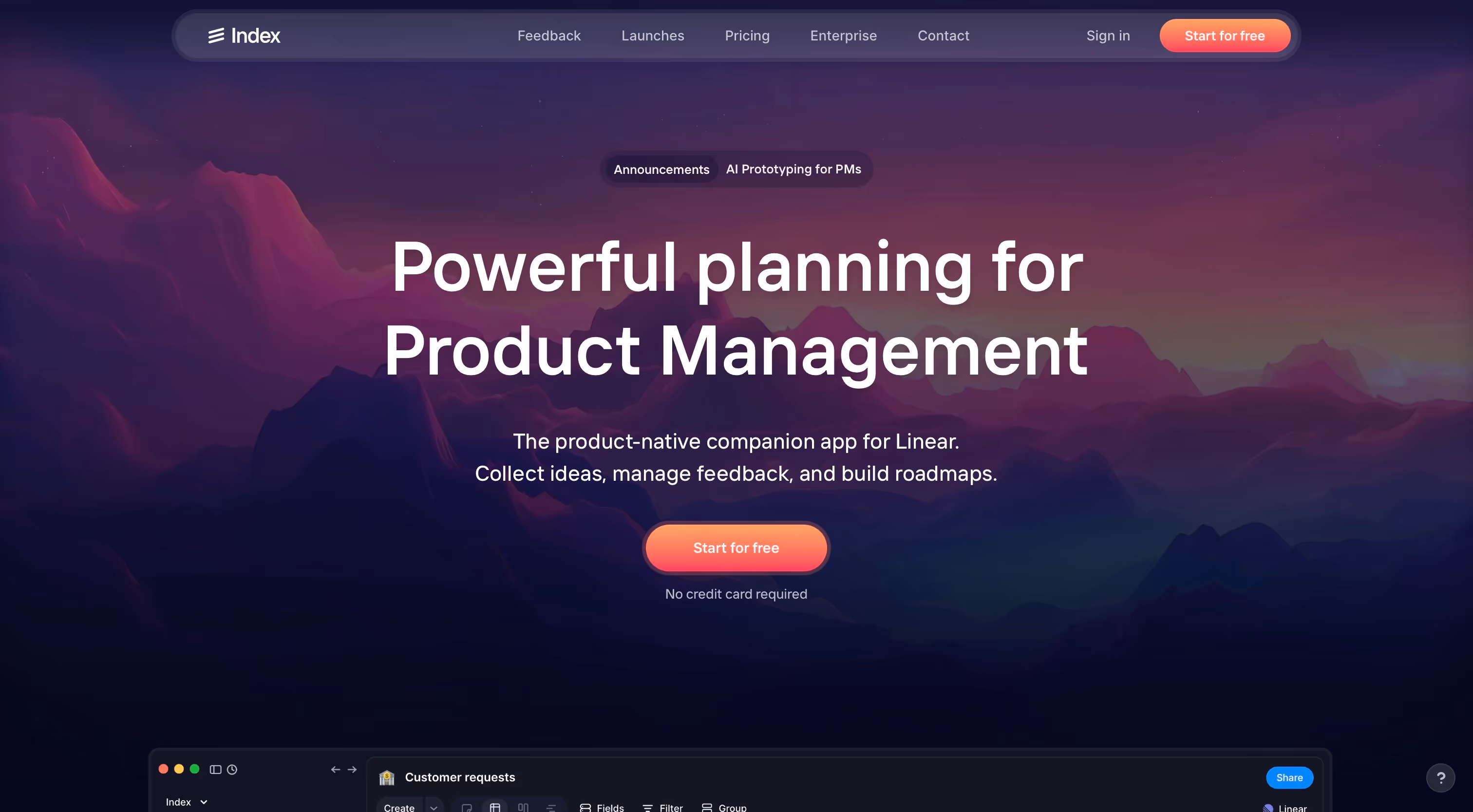 Index is a product-native planning companion for Linear that helps PMs collect ideas, manage feedback, and build roadmaps.
