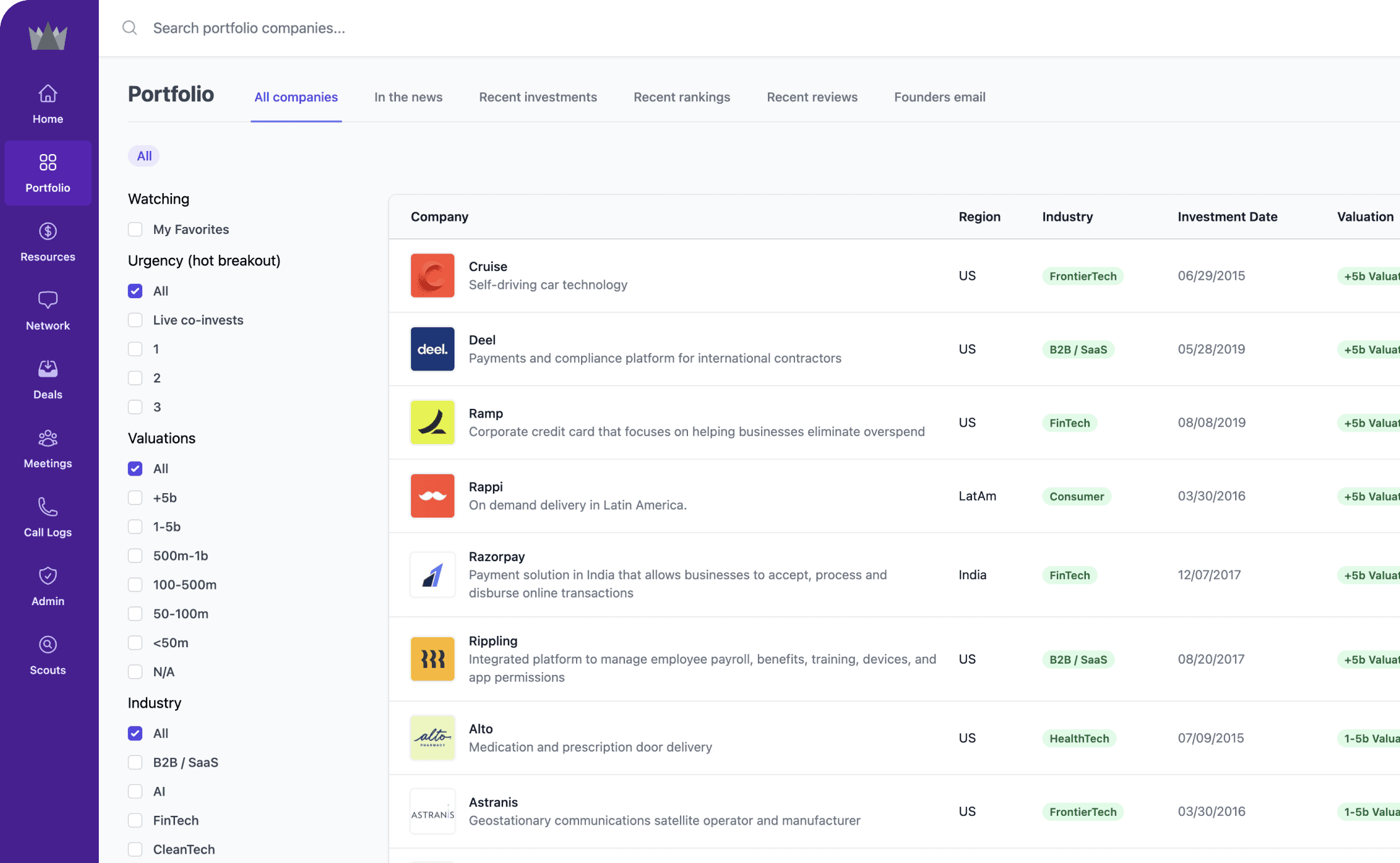 Radically transform manual software with AI by scanning data across internal and external data sources to automate sourcing, diligence, and portfolio monitoring.